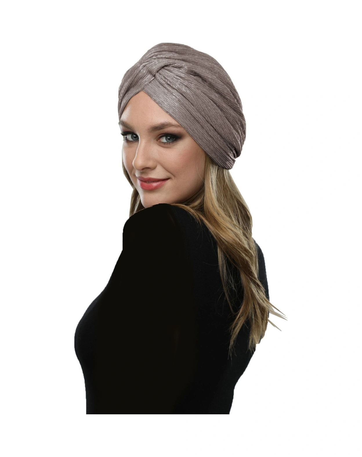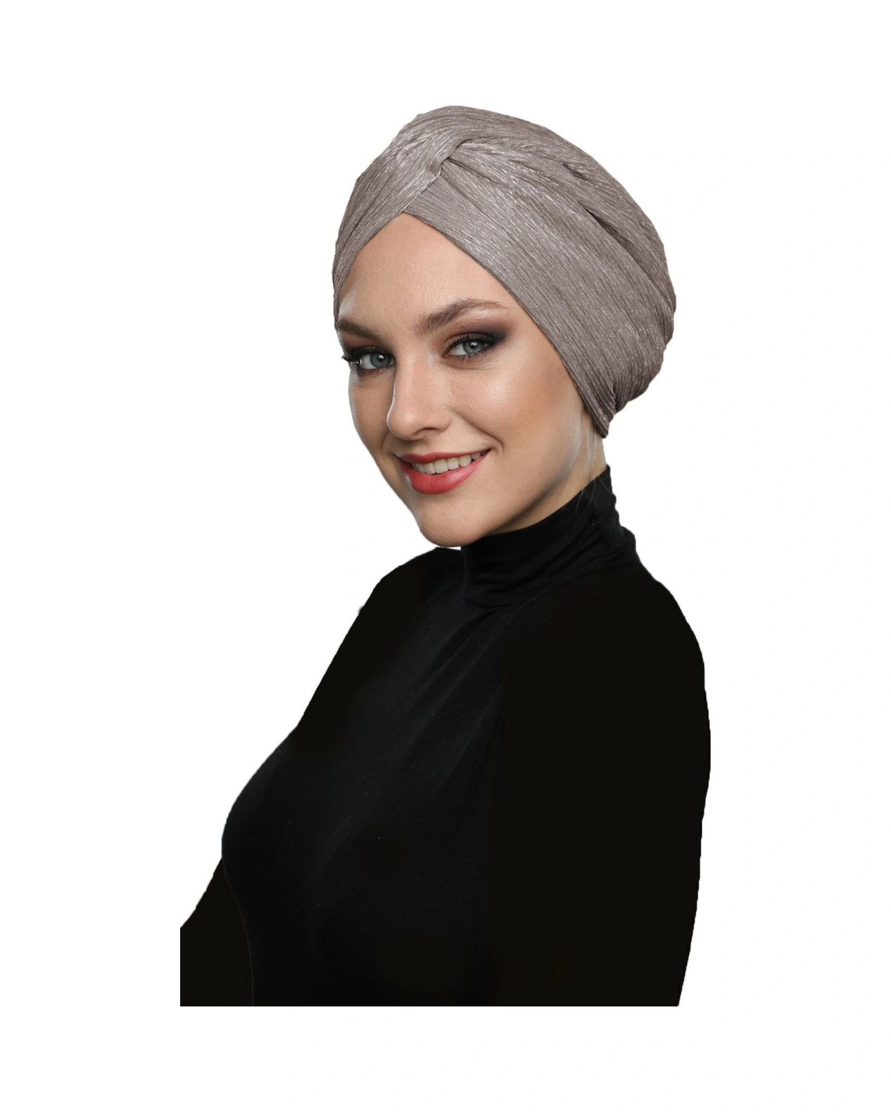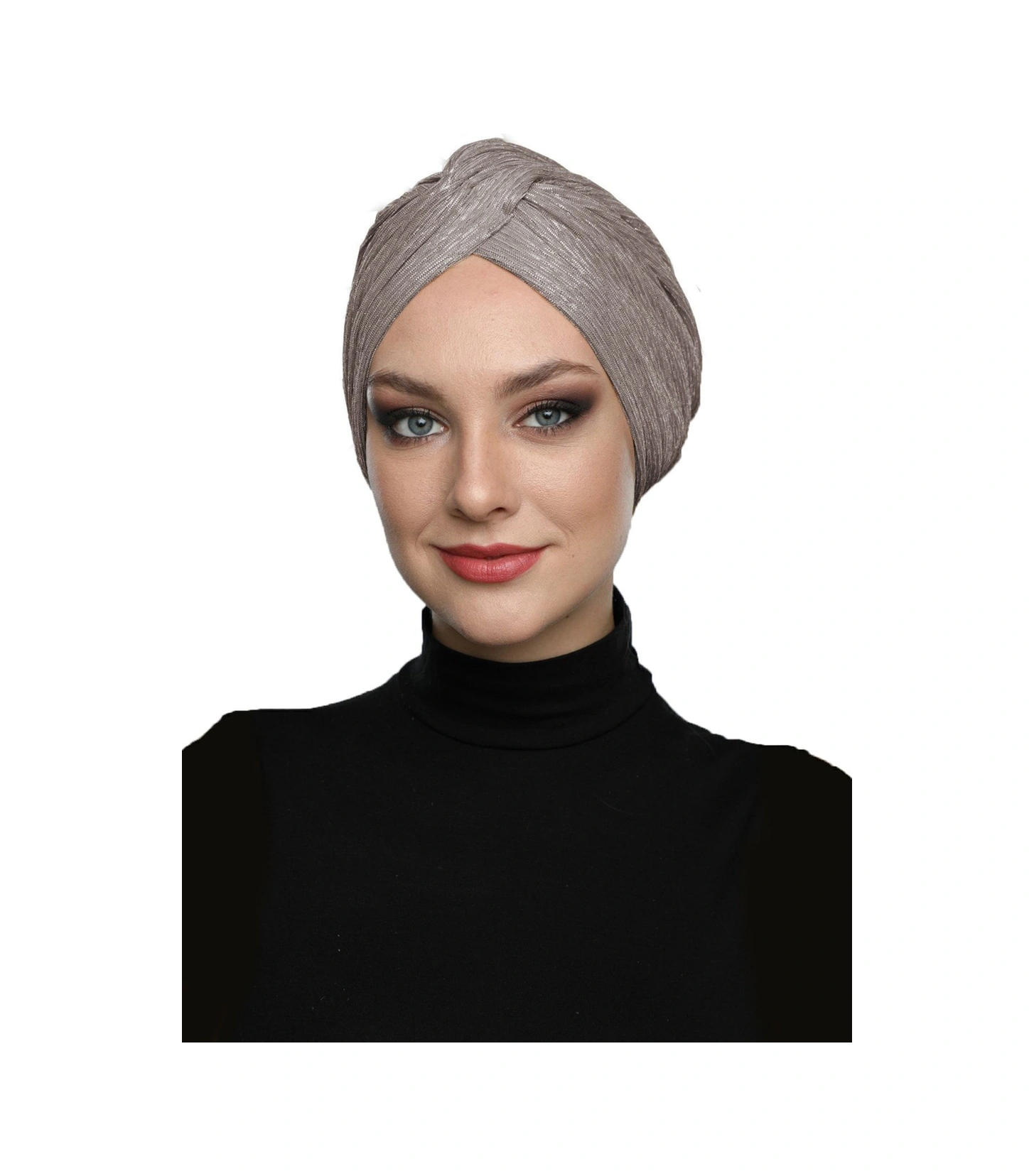 Simli Çapraz Astarlı Kahve Hazır Türban Tesettür Bone Kahve