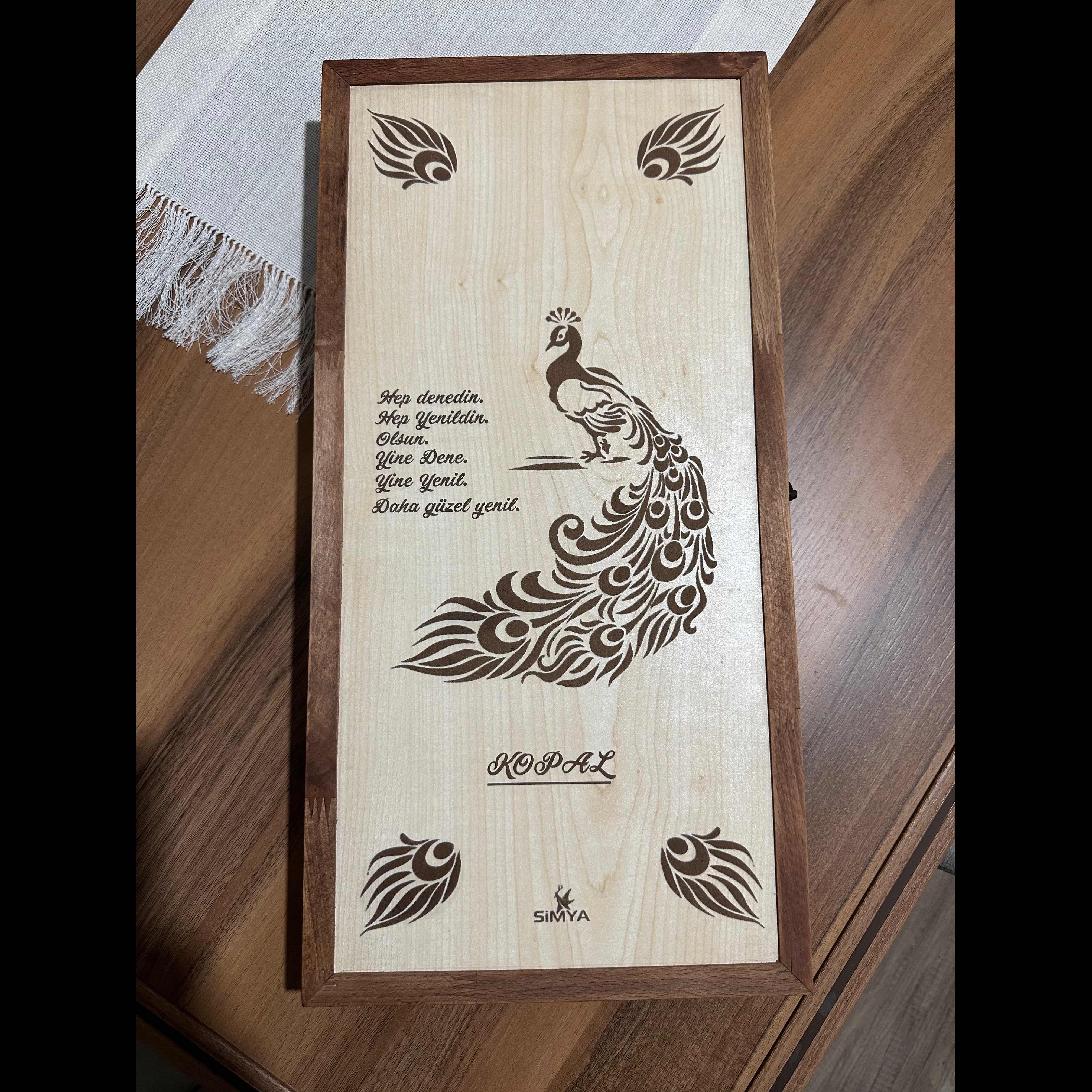 Ürün gerçekten güzel, kaplama filan yok, üzerindeki şekiller kabartılı olarak güzel bir şekilde yapılmış. Satıcı Ozlem hanıma iletişim kurarak ürünü istediğim gibi kişiselleştirdim. Üründe cila filan olmadığı için zarları biraz sert atmak lazım, buda güzel birşey normalde başka tavlalarda zarı hızlı attığımızda tavlanın dışına çıkıyor, bunda böyle birşey neredeyse olmuyor. Genel olarak çok memnun kaldım ve 2 adet ürün aldım.