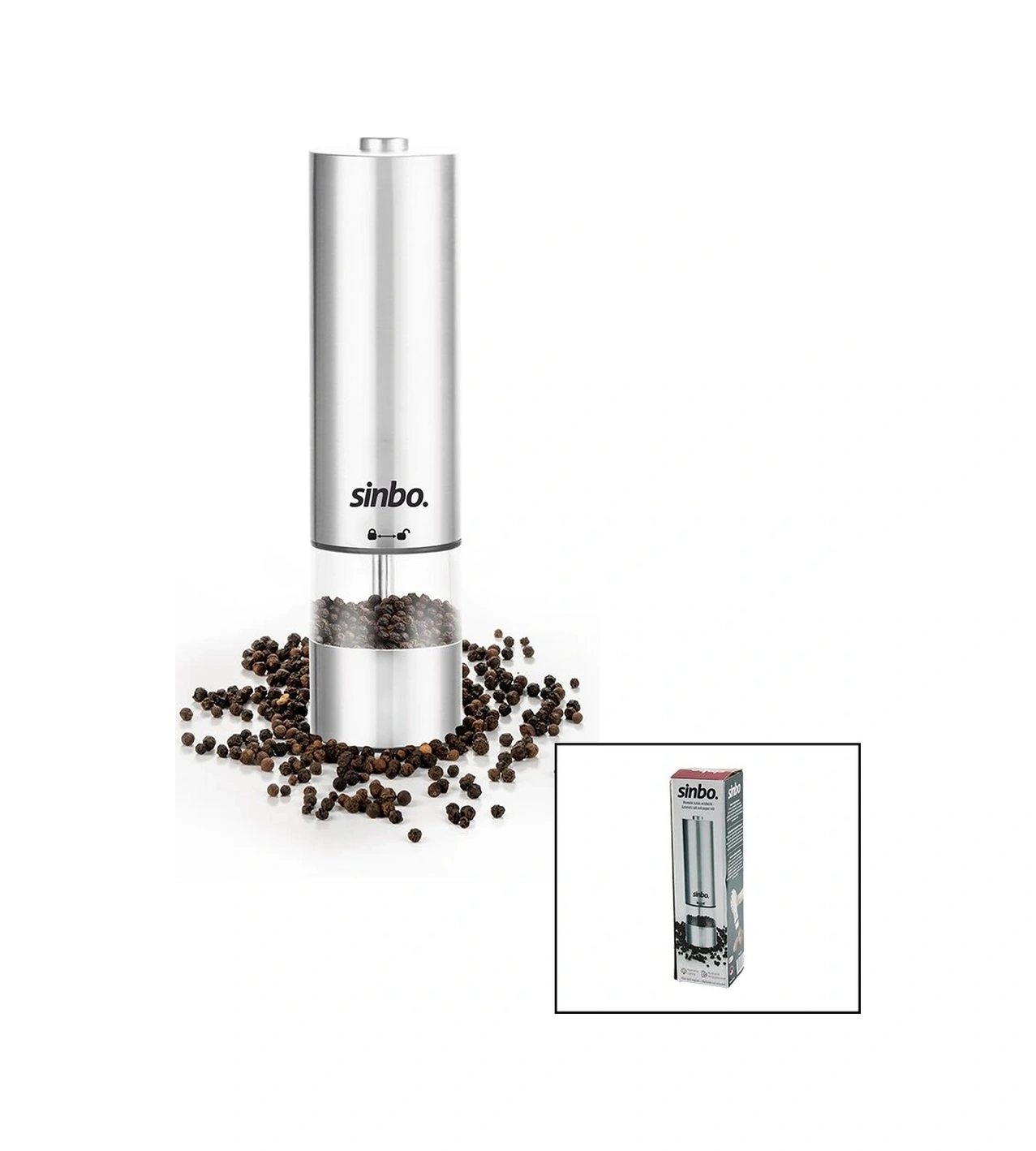 Sinbo Shb-7502 Pilli Otomatik Tuz - Karabiber Öğütücü Işıklı Çelik Gövde Akrilik Hazne Kahverengi