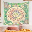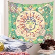 Singree Yeşil Güneş Ve Ay Desenli Poliester Dekoratif Duvar Örtüsü - 73x95 Cm Ev Dekorasyonu Tapestri