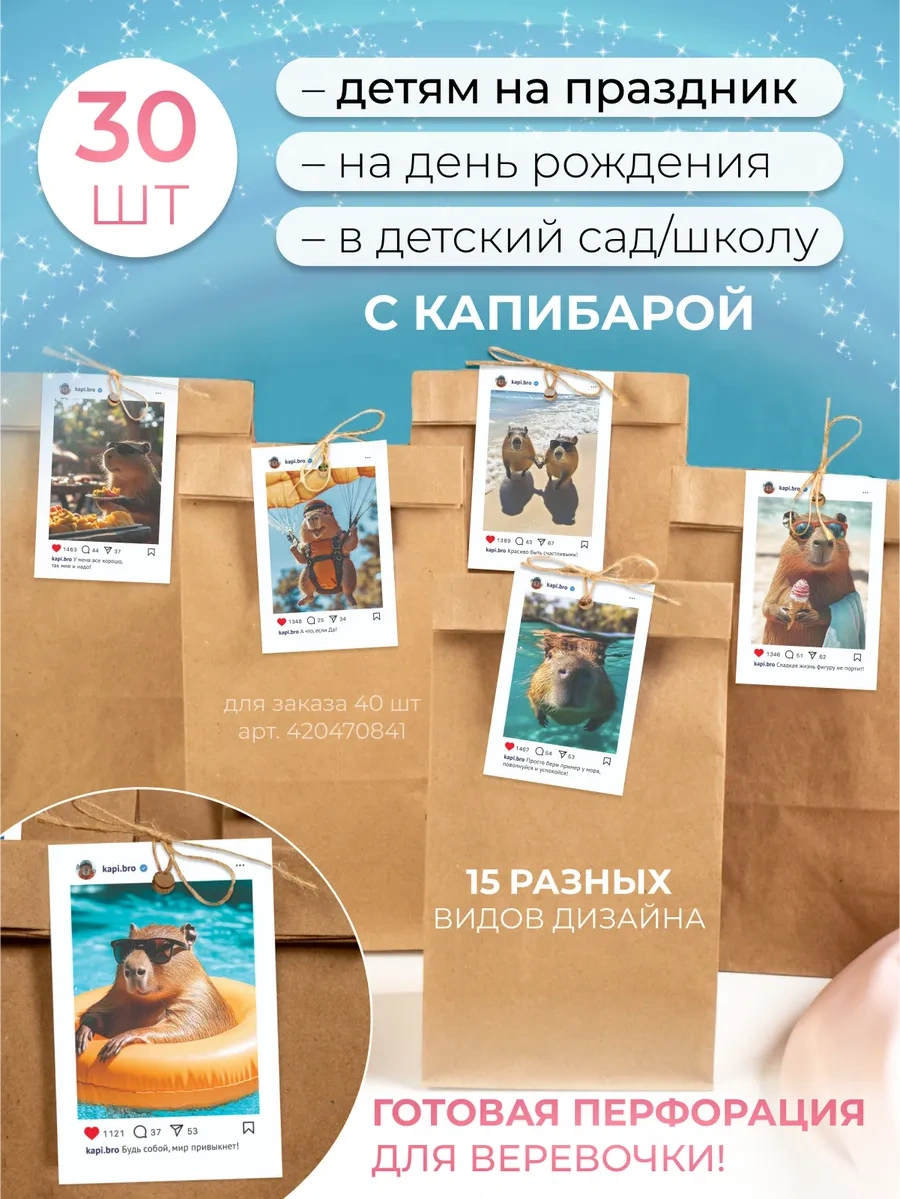 Sinitsa Ecoshop Çocuklar İçin Kapibara Etiketli Hediye Poşetleri 30 Adet 420470075