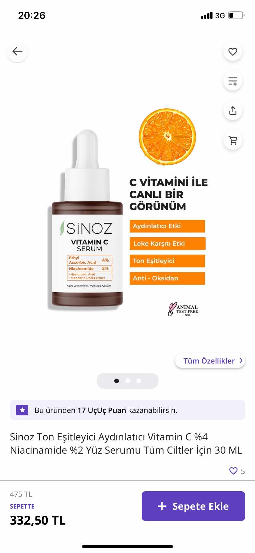Sinoz Ton Eşitleyici Aydınlatıcı Vitamin C %4 Niacinamide %2 Yüz Serumu Tüm Ciltler İçin 30 ML