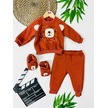 Şirin Bear Surat Panduflu Kışlık 2 Parça Takım Koyu Kahverengi
