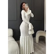 Sırt Dekolteli Çan Kollu Gibeli Uzun Elbise - Beyaz Beyaz