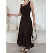 Sırt Dekolteli Kolsuz Uzun Elbise - Kahverengi Kahverengi