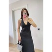 Sırt Dekolteli Uzun Elbise - Siyah Siyah