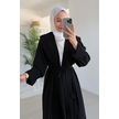 Sırt Detay Dökümlü Abaya - Siyah Siyah