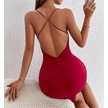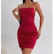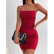 Sırt Kısmı Derin V Kesim Capraz Biyeli Yanlardan Ve Arka Ortadan Buzgulu Elbise Kırmızı