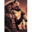 Şişeden Şarap İçen Sırtlan Desenli Mdf Tablo 35cm X50cm