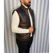 Şişme Hakiki Deri Yelek Karartmalı Kahve Gündelik,mevsimlik Slim Fit Kesim Kahverengi