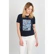 Sistas Kadın Baskı Desenli Kısa Kollu Pamuklu Bluz 24099 Lacivert Lacivert
