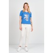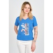 Sistas Kadın Baskı Desenli V Yaka Kısa Kollu Pamuklu Bluz 24100 Saks Saks