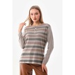 Sistas Kadın Desenli Bisiklet Yaka Uzun Kol Bluz 23596 Keten