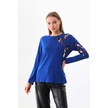 Sistas Kadın Desenli Bisiklet Yaka Uzun Kol Bluz 23598 Saks