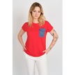 Sistas Kadın Düşük Kol Tek Cep Detaylı Bisiklet Yaka Bluz 24107 Kırmızı Kırmızı