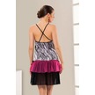 Sistina Bayan Desenli Fırfırlı Gecelik 616 Siyah