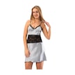 Sistina Bayan Siyah Dantelli Gri Saten Kısa Gecelik M-386 Gri