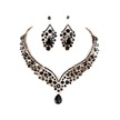 Siyah 1 Takım Gelin Küpe Kolye Su Damlası Şeklinde Rhinestones Takı Geometrik Ayarlanabilir Takı Seti Düğün İçin Siyah