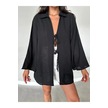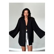 Siyah %100 Keten Bağcık Detaylı Kimono Bluz Siyah