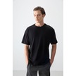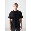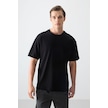 Siyah %100 Pamuk Kalın Yumuşak Dokulu Oversize Fit Basic Erkek T-shirt - 88353 Siyah