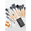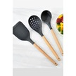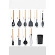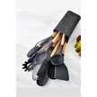 Siyah 11'li Bambu Saplı Silikon Servis Seti - Kepçe, Kevgir