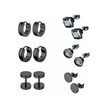 Siyah 6 Pairs Paslanmaz Çelik Cz Damızlık Küpe Huggie Hoop Kulak Delme Kadın Erkek Set Moda Takı Siyah