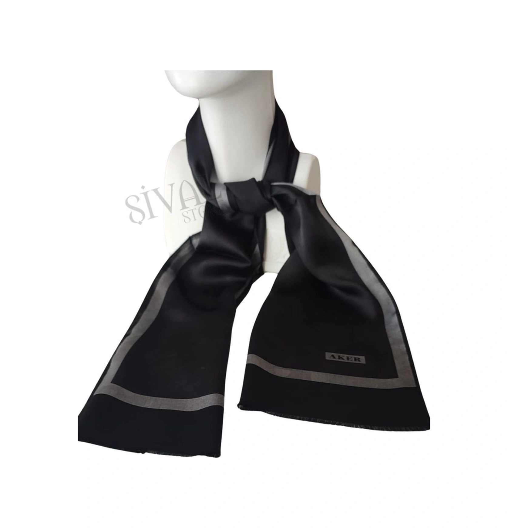 Siyah Aker İpek Jakar Fular 312 Siyah