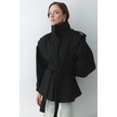 Aksesuarlı Kaşe Kaban Kemer Detaylı Haki