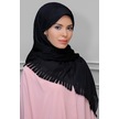 Siyah Arkadan Bağlamalı Tesettür Eşarp Kesik Elyaf Piliseli Saçak (545491470) Siyah