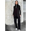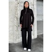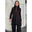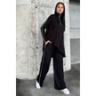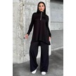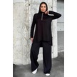 Siyah Asimetrik Kesim, Fermuarlı Bluz & Bol Paça Pantolon - Viskon İki İplik Kumaş Alt & Üst Takım Siyah