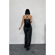 Kadın Lacivert Beyaz Ekose V Yaka Kolsuz Şık Yazlık Bluz Lacivert