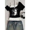 Siyah Balance Cat Our Love Is Ek Askılı Kısa Kollu Gotik Y2k Full Body Crop-18024 Siyah