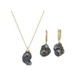 Siyah Barok İnci Kolye Küpe İkili Set 40 Cm / Sarı Gümüş