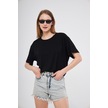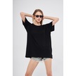 Siyah Baskısız Düz Bisiklet Yaka Kadın Oversize T-shirt SIYAH