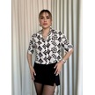 Siyah Beyaz Baskılı Crop Gömlek Siyah