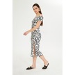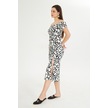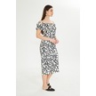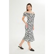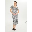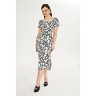 Siyah Beyaz Desenli Kalp Yaka Yirtmacli Elbise Siyah