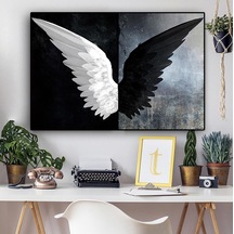Siyah Beyaz Güçlü Tüy Kanatları 5d Diy Elmas Boyama Mozaik Resim Melek Duvar Dekor 40x50cm
