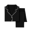 Siyah-beyaz Pamuklu Düğmeli Biyeli Kadın Pijama Takımı Siyah