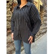 Siyah Çizgili Oversize Pamuklu Düğmeli Gömlek Siyah