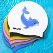 Siyah Çocuk Yüzme Kapakları Kız Erkek Sevimli Karikatür Yunus Uzun Saç Çocuklar İçin Dayanıklı Silikon Su Geçirmez Elastik Yüzmek Kapakları Siyah