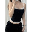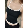 Siyah Dantel Detaylı Beyaz İnce Gotik Y2k Askılı Crop-17917 Siyah