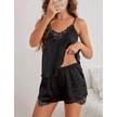 Siyah Dantel İşlemeli İnce Askılı Saten Şortlu Takım Siyah