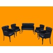 Siyah Deri Gürgen Ayaklı Pera Ofis Koltuk Takımı Kuaför Bekleme Koltuk Takımı Ofis Mobilyası Siyah