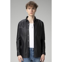 Siyah Dericlub Wm202 Gerçek Deri Erkek Gömlek Siyah