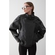 Siyah Dik Yaka Dokulu Deri Ceket - 509251 Siyah