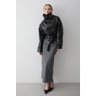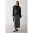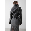 Siyah Düğmeli Kuşaklı Deri Ceket - 509261 Siyah