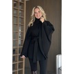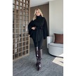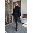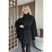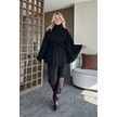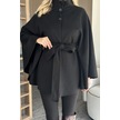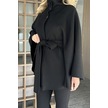 Siyah Düğmeli Kuşaklı Kaşe Panço - 2055 Siyah