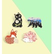 Siyah Emaye Pin Sevimli Ayı Kedi Tilki Şekli Kirpi Broş Seyahat İçin Siyah