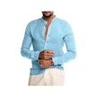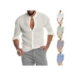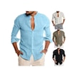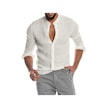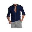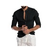 Siyah Erkek Pamuklu Keten Uzun Kollu Henley Gömlek Rahat Bol Düğmeli Üstler Tişört Siyah