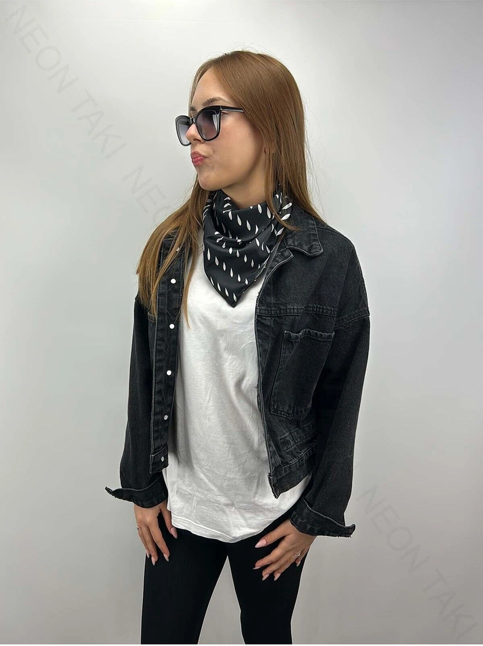 Siyah Fon, Beyaz Damlalar, Fular 6, 57cmx55cm Siyah Beyaz